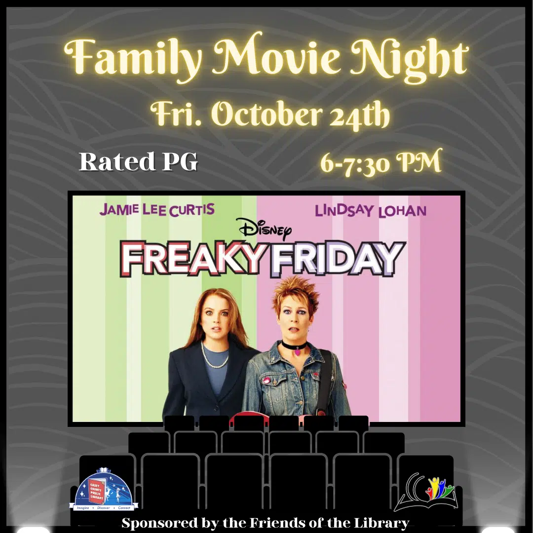 Date: Friday, October 24thTime: 5:00 – 6:30Ages: All AgesEnjoy a free, family friendly movie and popcorn, courtesy of your Friends of Casey County Public Library! Family movie nights feature a variety…